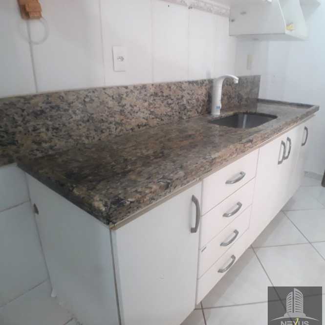 Cozinha e área de serviço com armários planejados e bancadas em granito